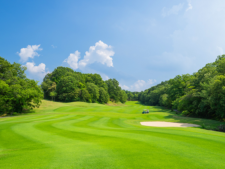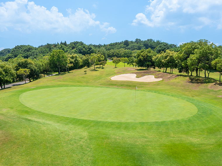 自然との共生を考慮しながら、高い戦略性にチャレンジした18ホール。自然環境との調和を大切にした落ち着いた雰囲気の丘陵コース。どなたでもスコアメークをしやすく、戦略性が高いコースと傾斜の少ないベントのワングリーンになっています。