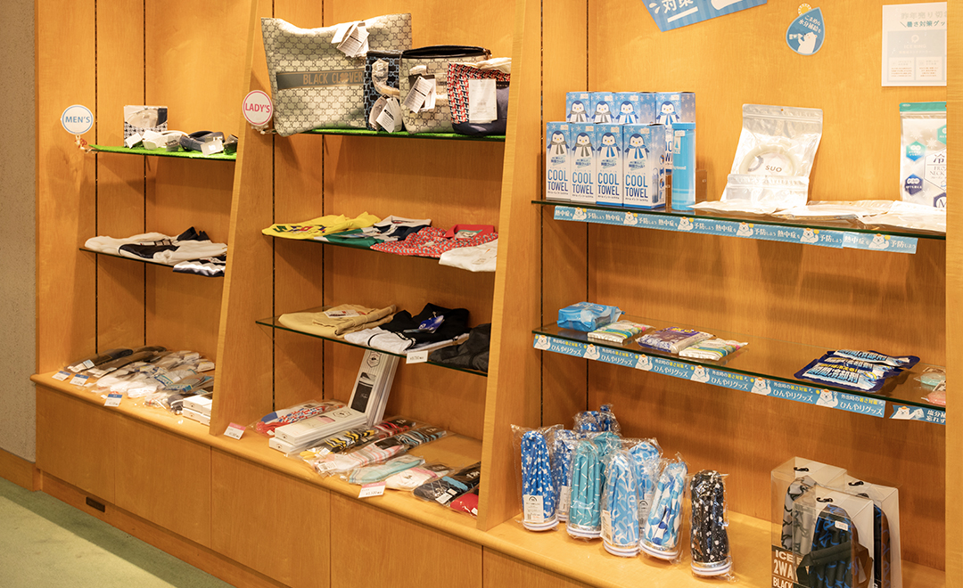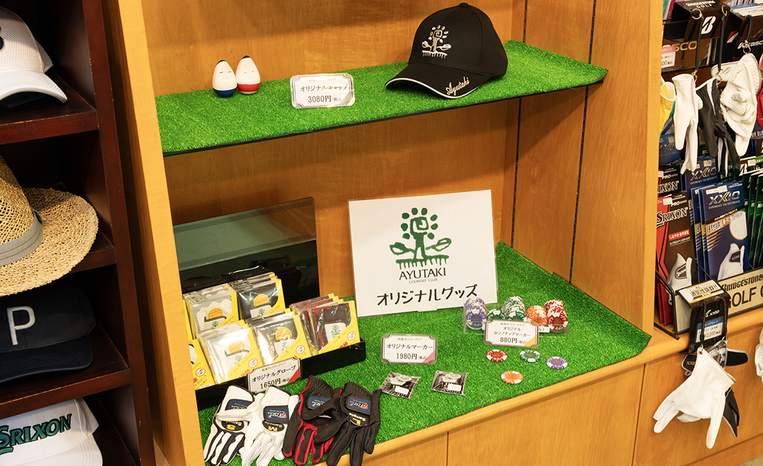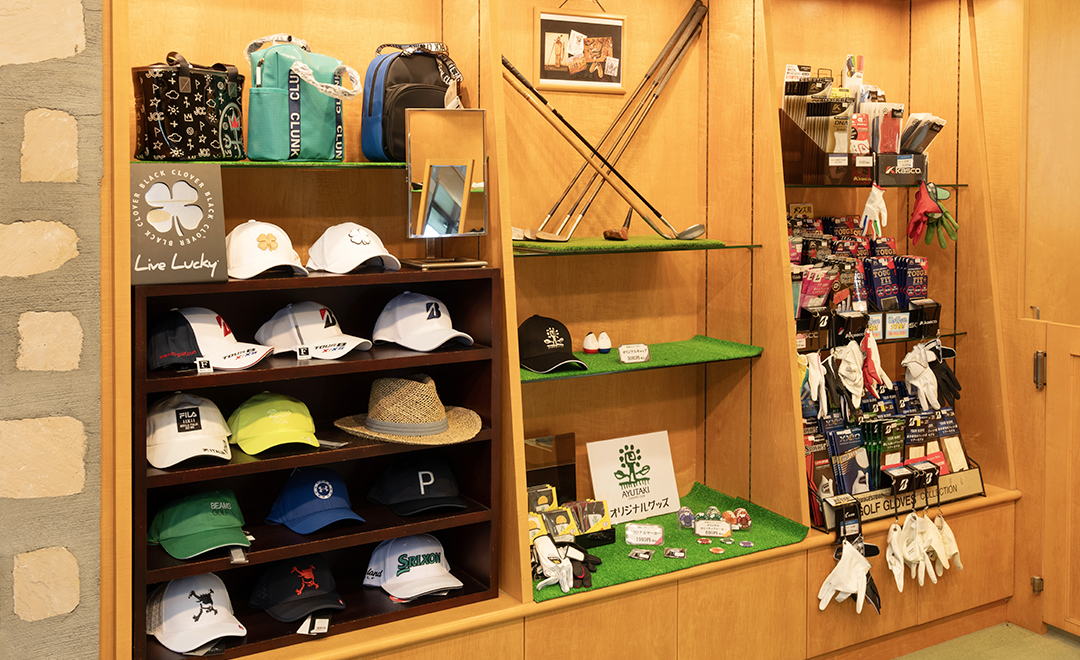 鮎滝オリジナルグッズから、メンズ・レディースのウェアやバッグ、ゴルフに必要な多彩な商品が並ぶ充実のショップになります。