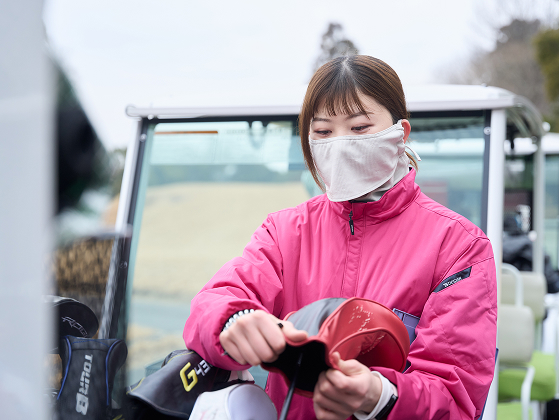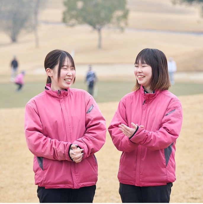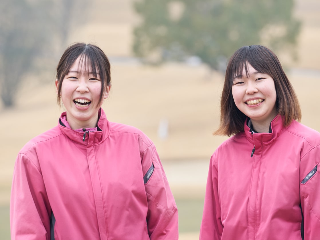 私たちはゴルフのことは何も知りませんでした。高校の先生におすすめされたことが入社のきっかけです。だけど今、ここで働くのがとても楽しいです。キャディの先輩だけでなく、支配人やほかの部署の人もみんな仲良くてアットホームだし、しっかり自分の時間を使えます。全然知らない世界だから不安かもしれないけど、安心して入社してください。