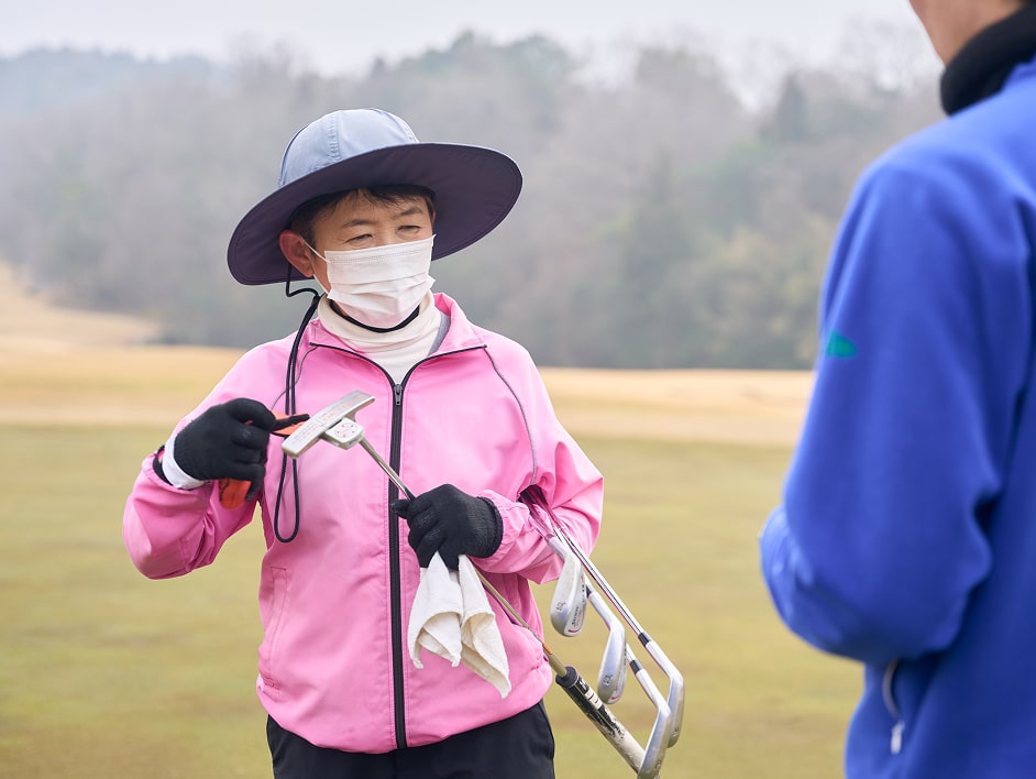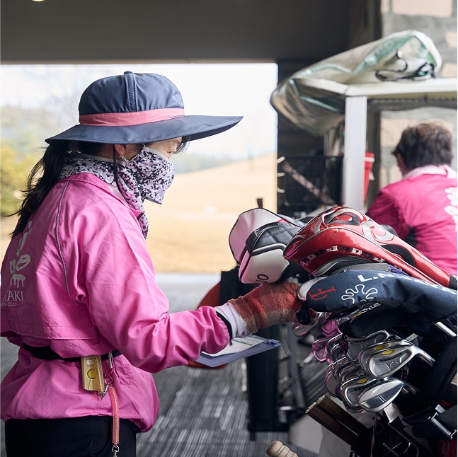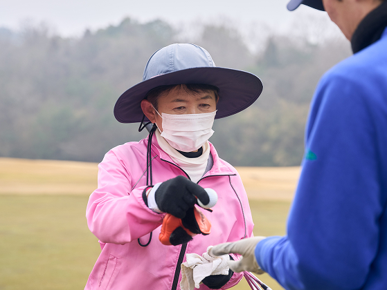 お客様のパートナーとなり、コースのアドバイスやコミュニケーションでプレーをサポートすることがキャディの仕事です。鮎滝カントリークラブでは3カ月の研修期間があり、ゴルフを知らないところからスタートした人もキャディとして活躍しています。