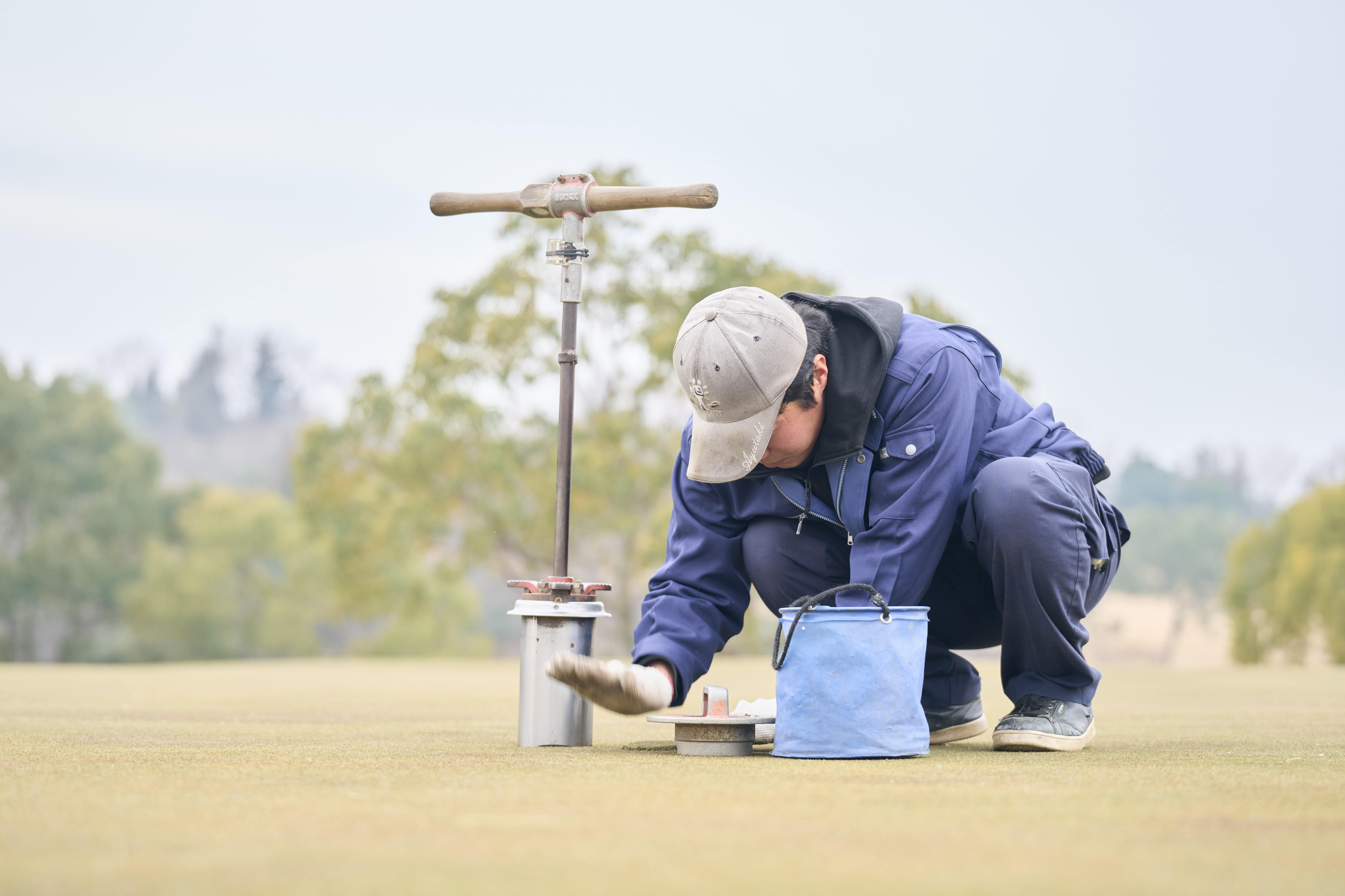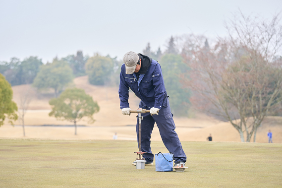 ゴルフ場全体の自然環境を守り、整えるのがコース管理の仕事です。各コースの芝の管理はもちろん、樹木の剪定やプランターの花々まで、すべてを任されています。自然を相手にすることが好きな人にはぴったりの仕事です。