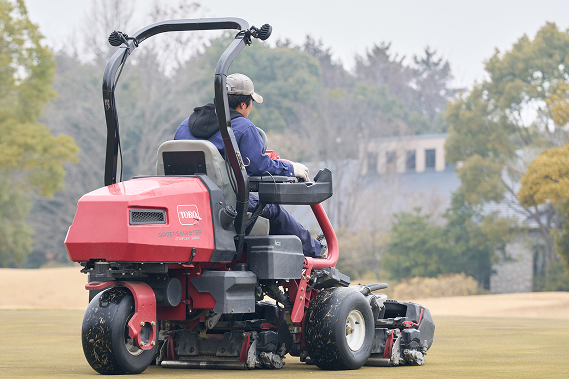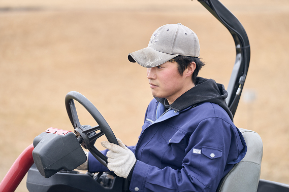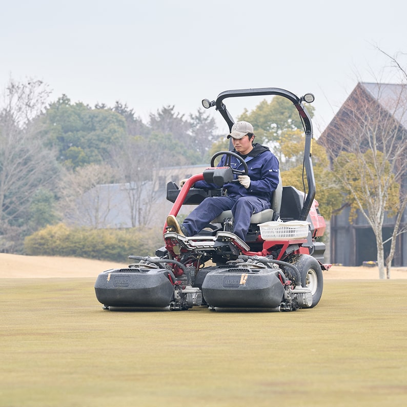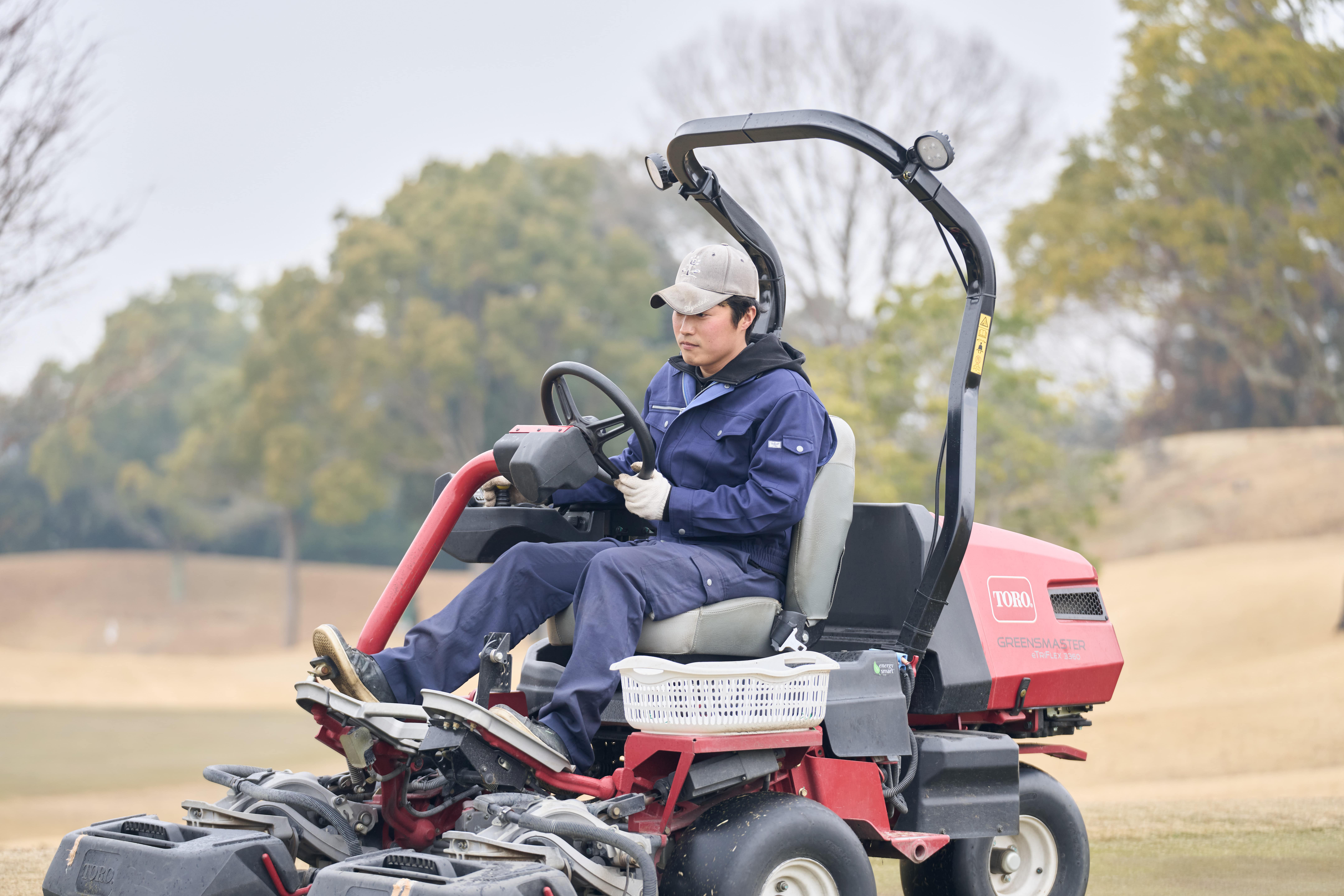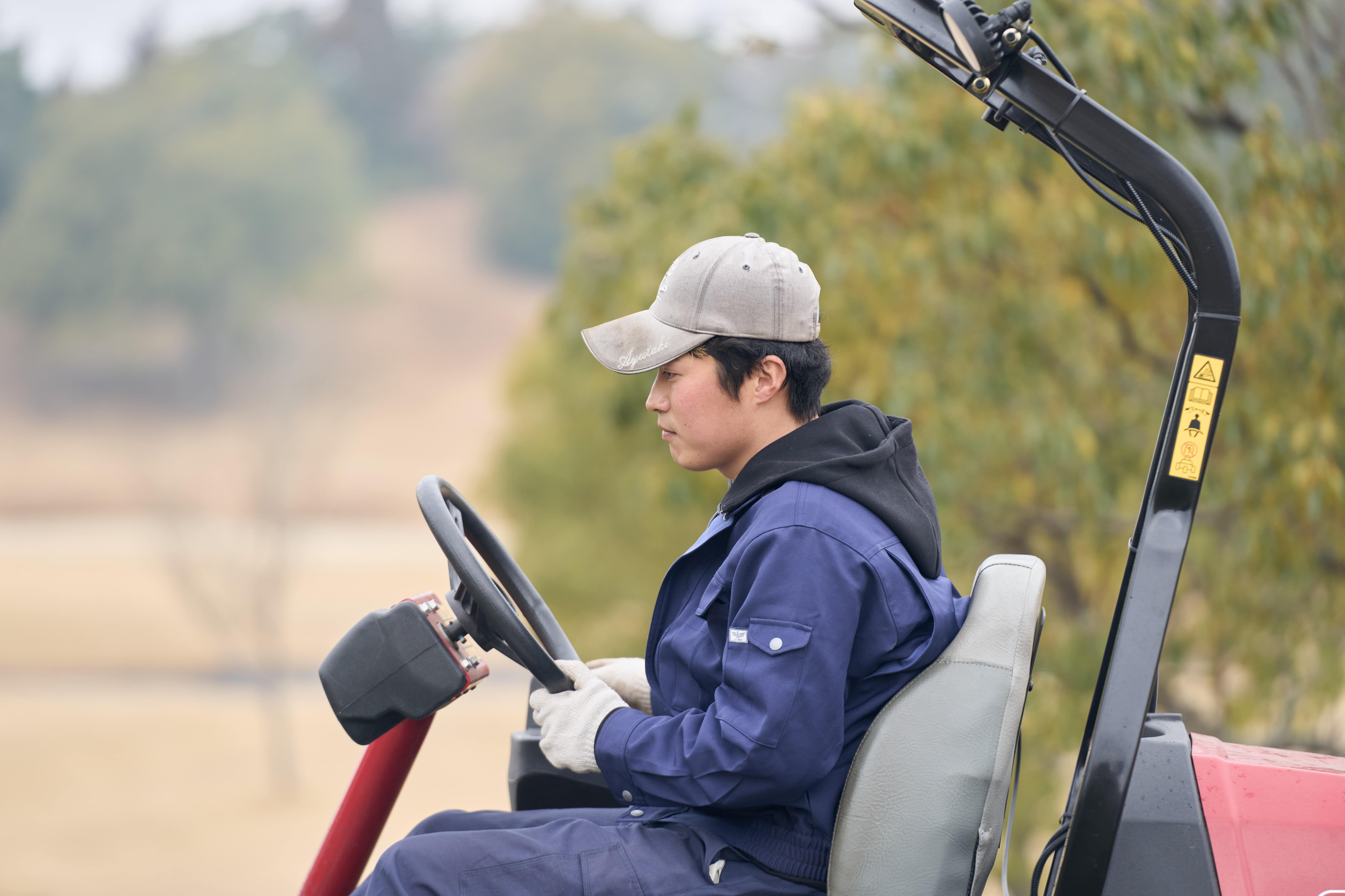 人を相手にするのではなく自然を相手にするので、自分のペースで働けるのが魅力です。私が一番好きなのは、大型の芝刈機を運転してフェアウエイの芝を刈ること。コースがキレイになっていく爽快感と、大きな機械を操る満足感の両方を味わっています。バイクやクルマなど乗り物好きにも、向いているかもしれません。