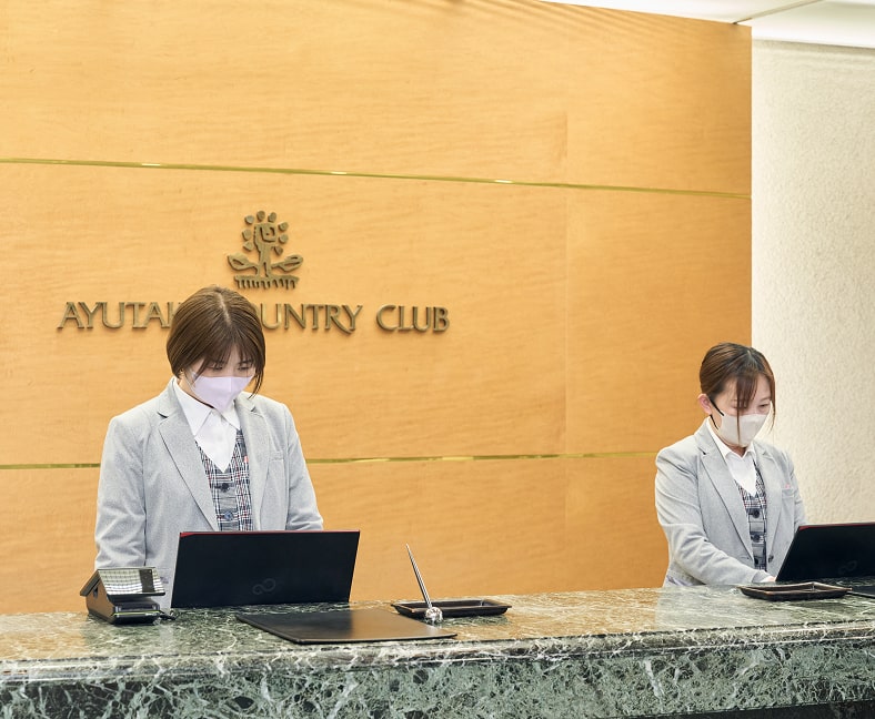 事務・フロントは、来場されたお客様の受付やプレー後の精算をはじめ、電話対応、予約管理、会員情報の管理、SNS運用などを行います。お客様の「最初」と「最後」の関わり、心のこもったおもてなしで、ゴルフ場に対する第一印象を決める大切な仕事です。