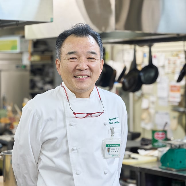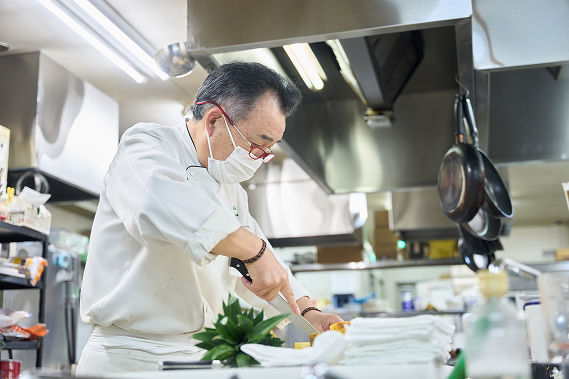 ゴルフ場のレストランとホテルなどのレストランの違いは、働く時間がきっちり決まっていることです。イベントなどを除いて残業はありませんから安心してください。私は働く人の個性を生かすこともシェフの仕事だと考えています。それぞれが一番働きやすい場所で、その人らしい力を発揮してもらえる職場です。