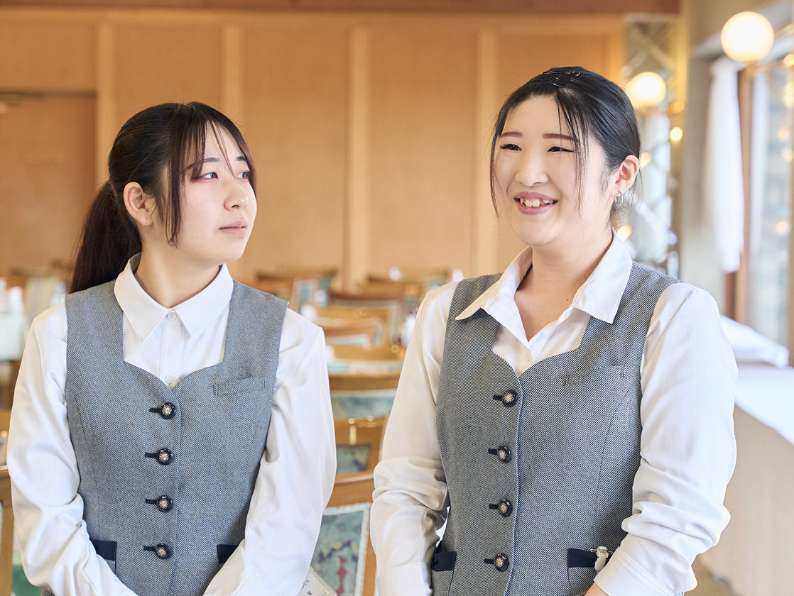 私が大切にしているのは、みんなで仲良く働くことです。後輩とは何でも話しあうことを心がけていて、もし苦手なことがあれば遠慮なく相談してもらってカバーするようにしています。働くみんなの雰囲気が明るくなれば、それがお客様に伝わって「感じのいいレストラン」になると考えているんです。